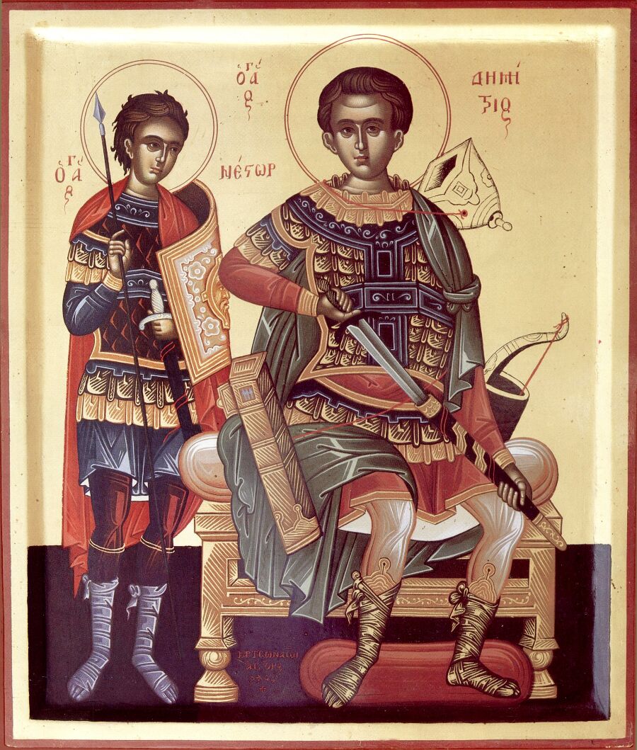 Мученик Нестор, ученик св. Димитрия Солунского, во время гладиаторских игр вступил в бой с любимым силачом императора германцем Лием, который убивал многих христиан. Перед поединком Нестор испросил благословения и молитв у своего наставника в темнице. Св. Димитрий осенил его крестным знамением и предрёк: «Лия победишь и сам постраждешь за Христа». Укреплённый Божией силой, Нестор победил Лия. Разгневанный император, узнав, что победитель ‒ христианин, приказал казнить св. Нестора через усечение мечом.